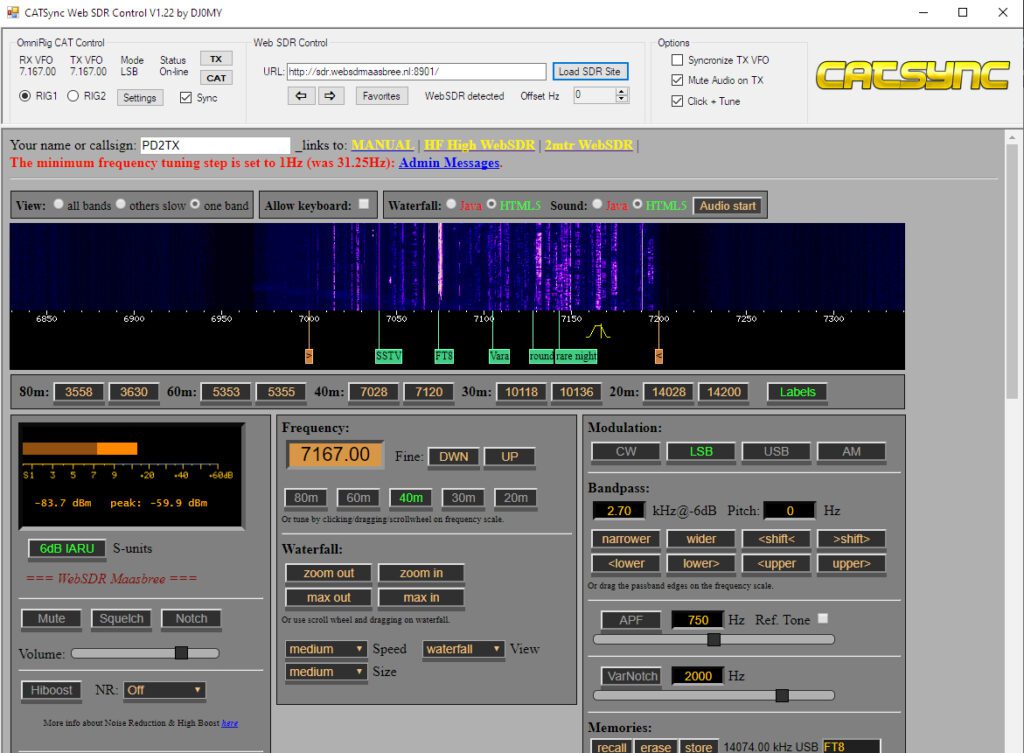 - Click on the WebSDR waterfall and retune your rig in realtime.